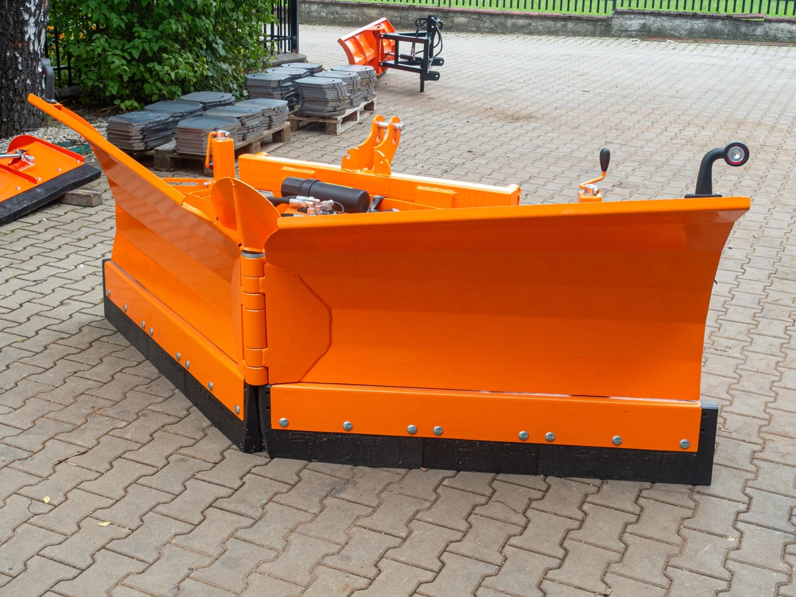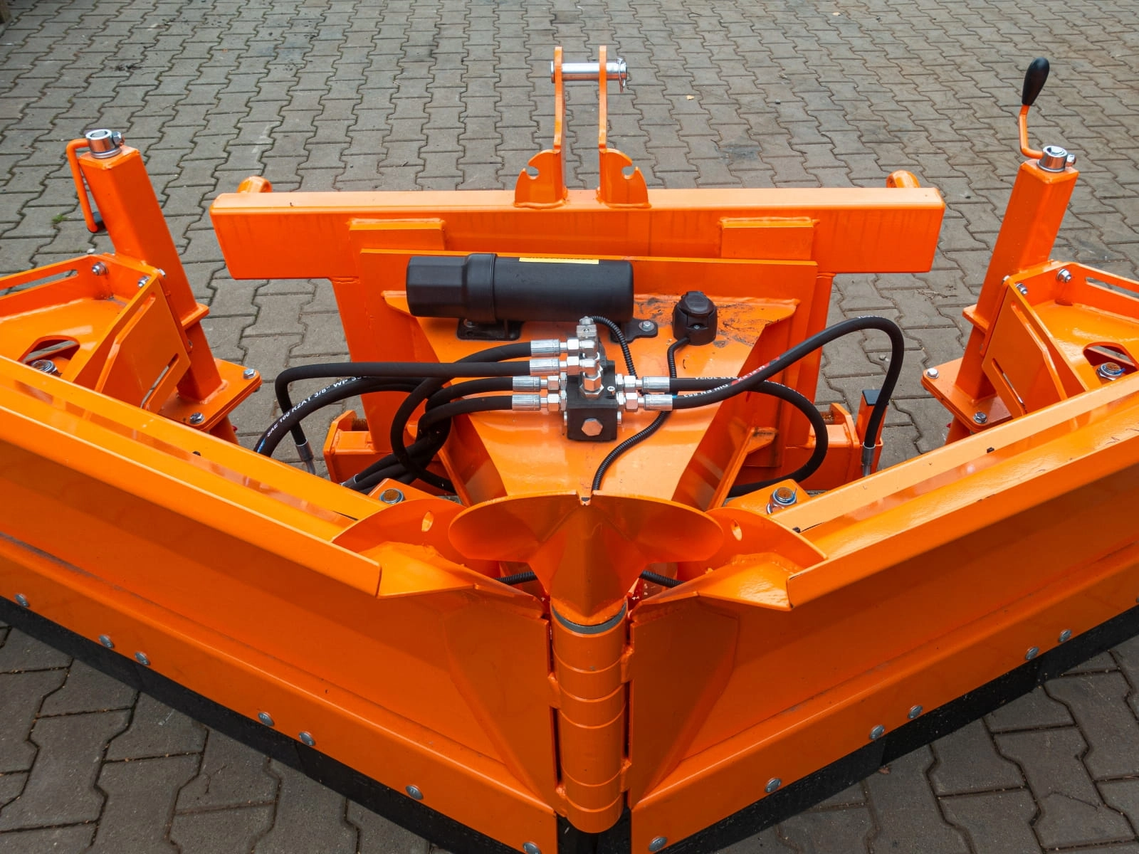 - Regulacja kąta pracy: pług może być ustawiany pod kątem w lewo, w prawo lub na wprost, co pozwala dopasować sposób odśnieżania do warunków.