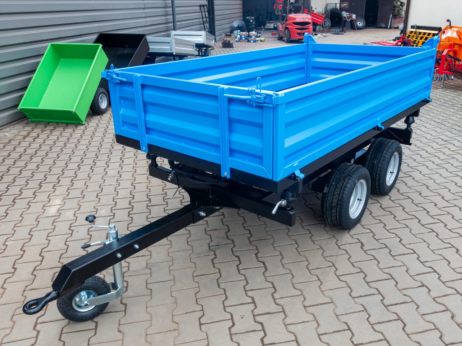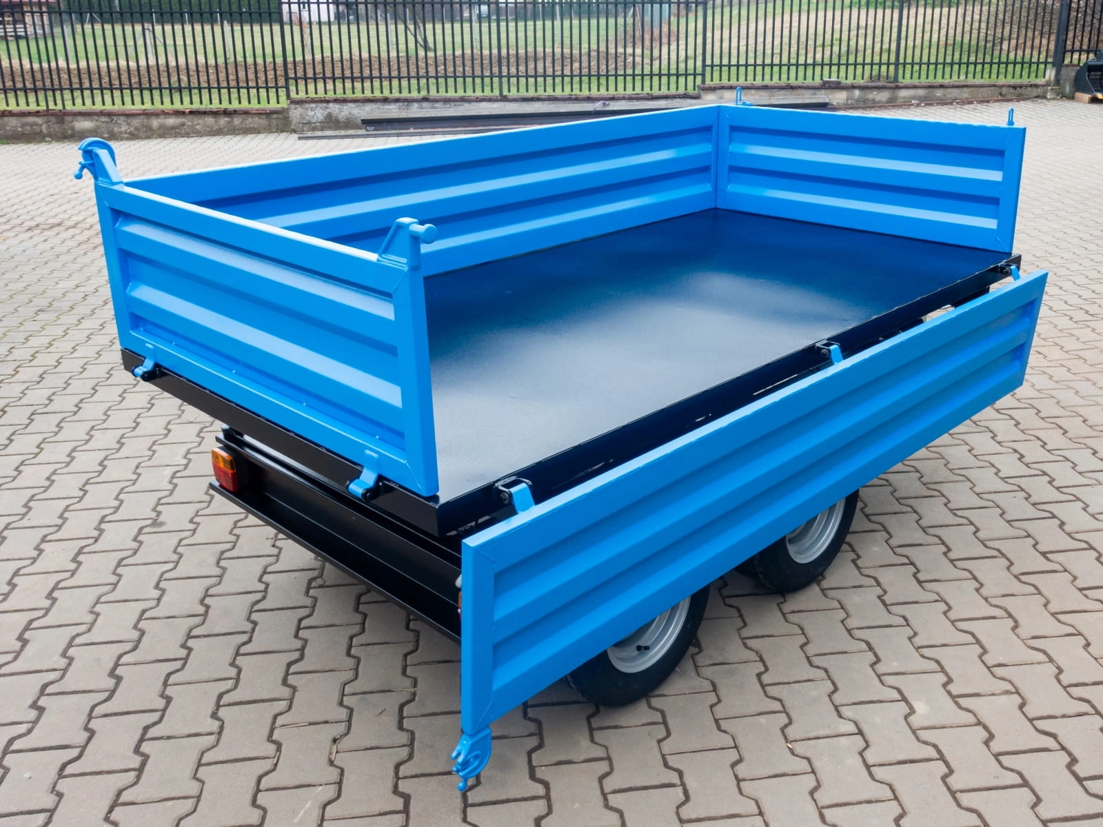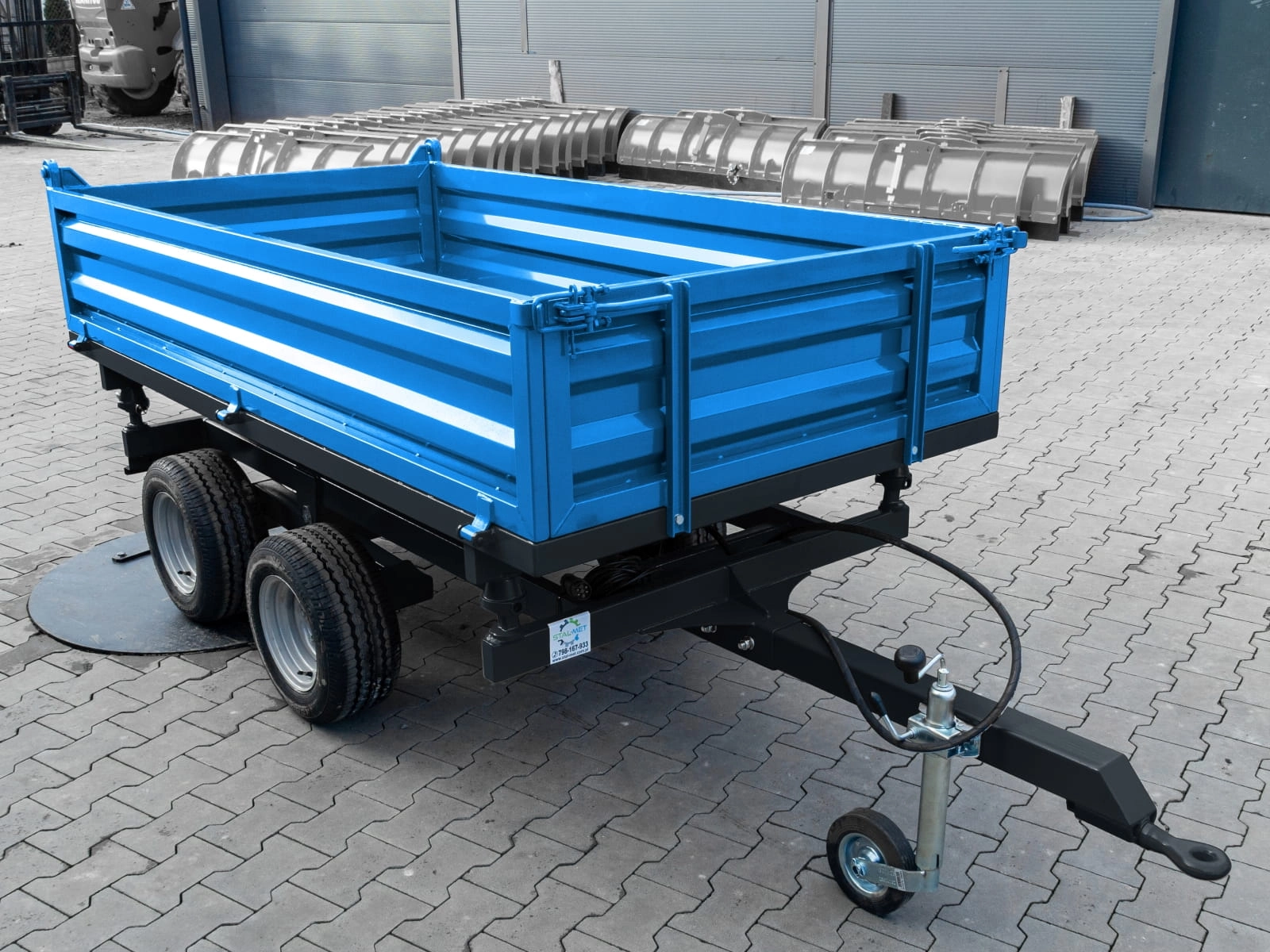 Dwuosiowa przyczepa rolnicza (do ciągnika, minitraktora lub quada ) o ładowności 2,5t z hydrauliką o wszechstronnym zastosowaniu. Duża ładowność, dwie osie, cztery koła i kiper na trzy strony to jedne z wielu zalet tej przyczepy.
