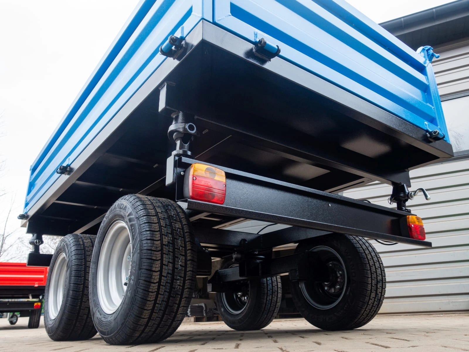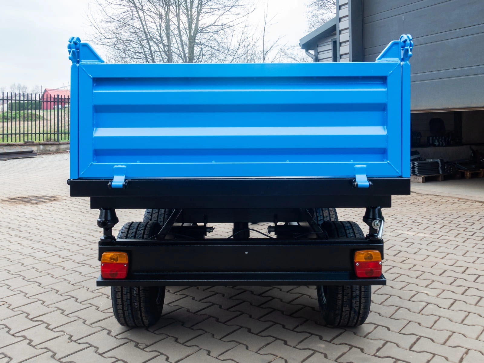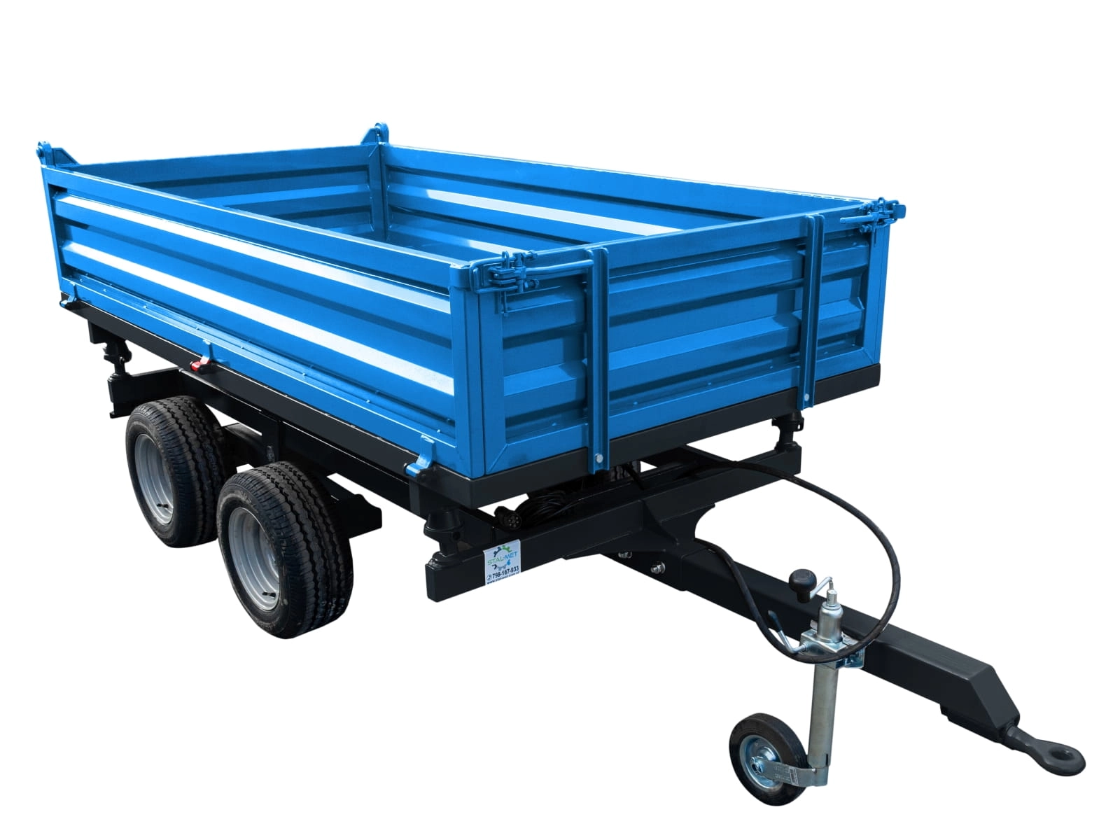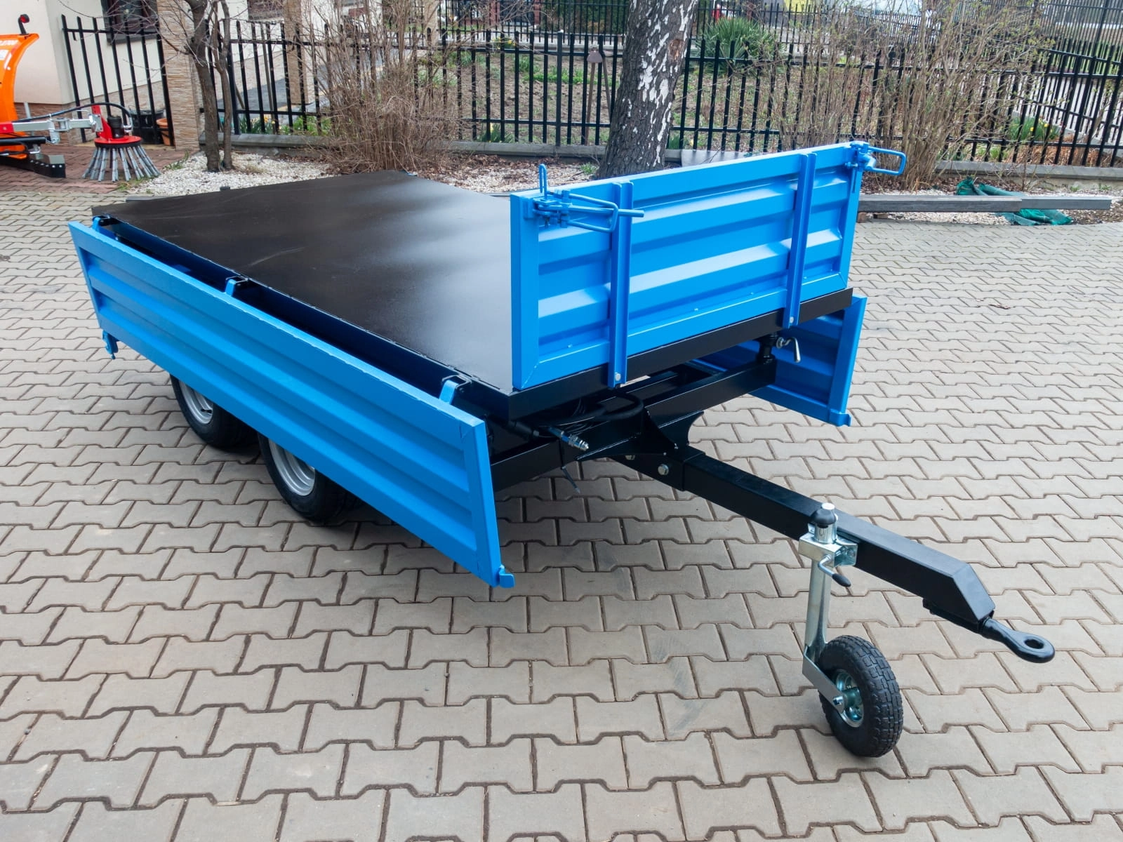 Dwuosiowa przyczepa rolnicza (do ciągnika, minitraktora lub quada ) o ładowności 2,5t z hydrauliką o wszechstronnym zastosowaniu. Duża ładowność, dwie osie, cztery koła i kiper na trzy strony to jedne z wielu zalet tej przyczepy.