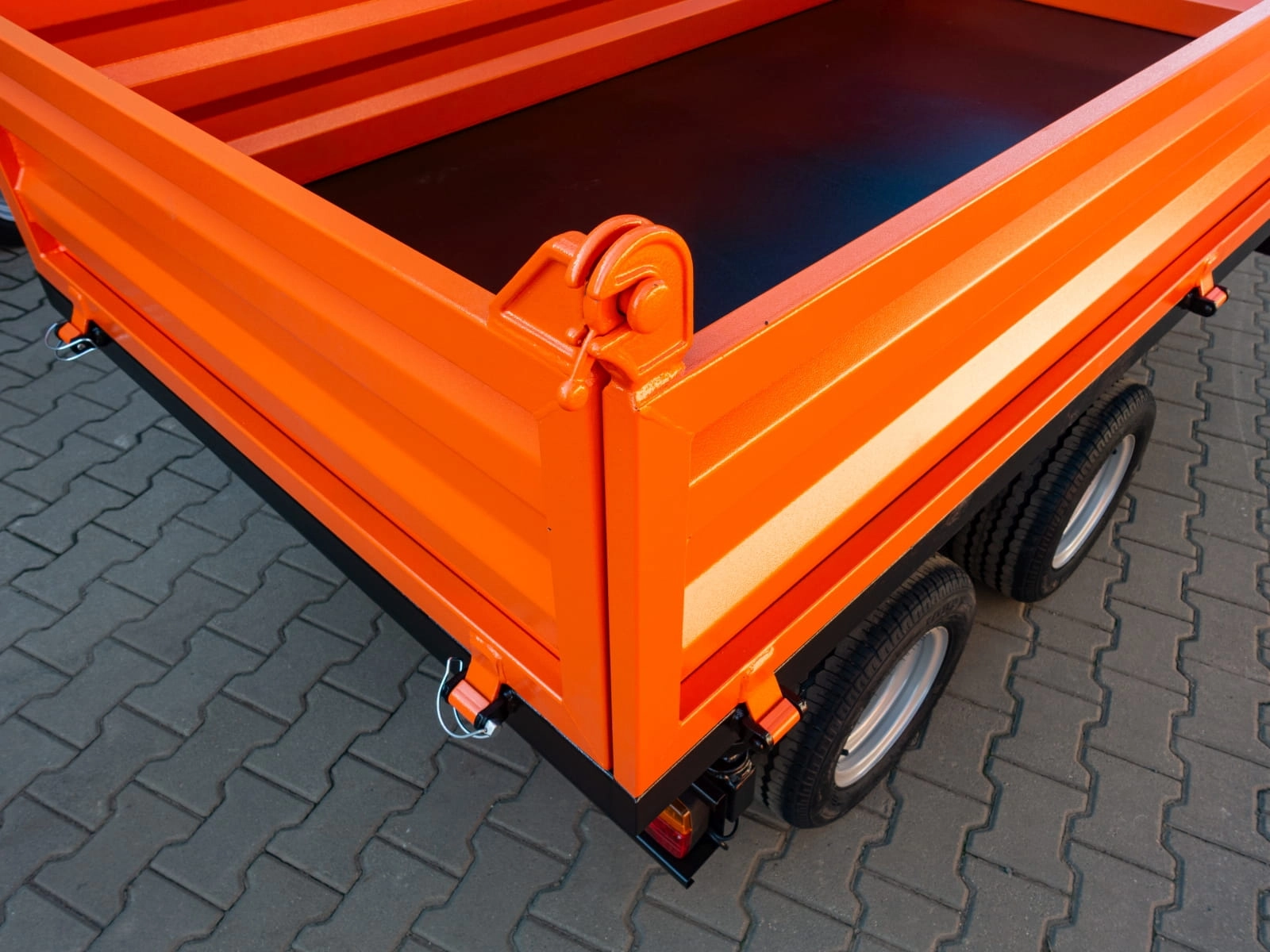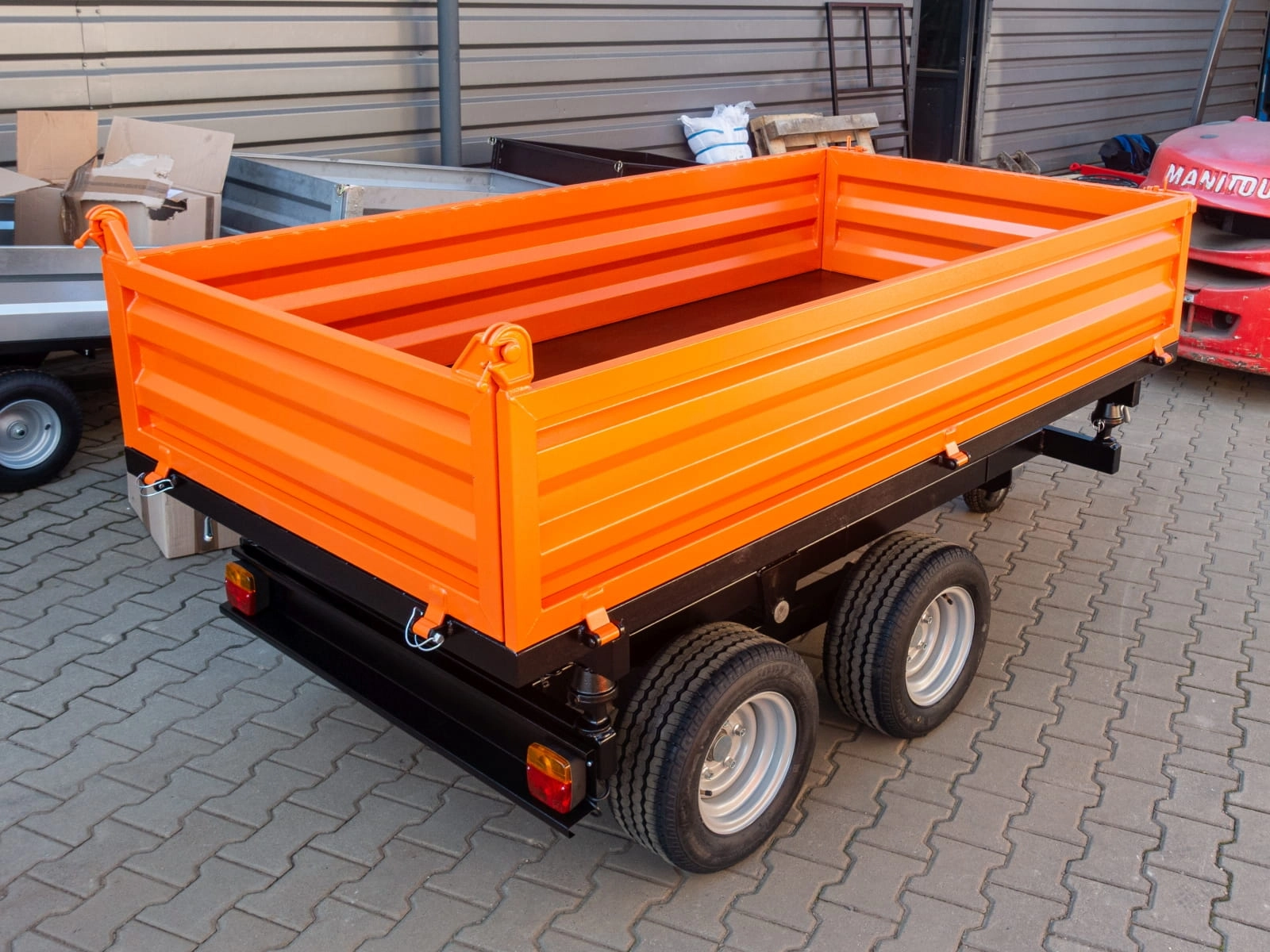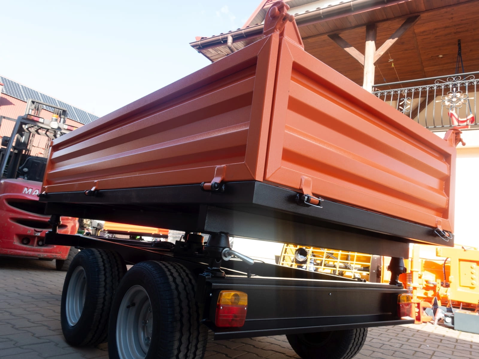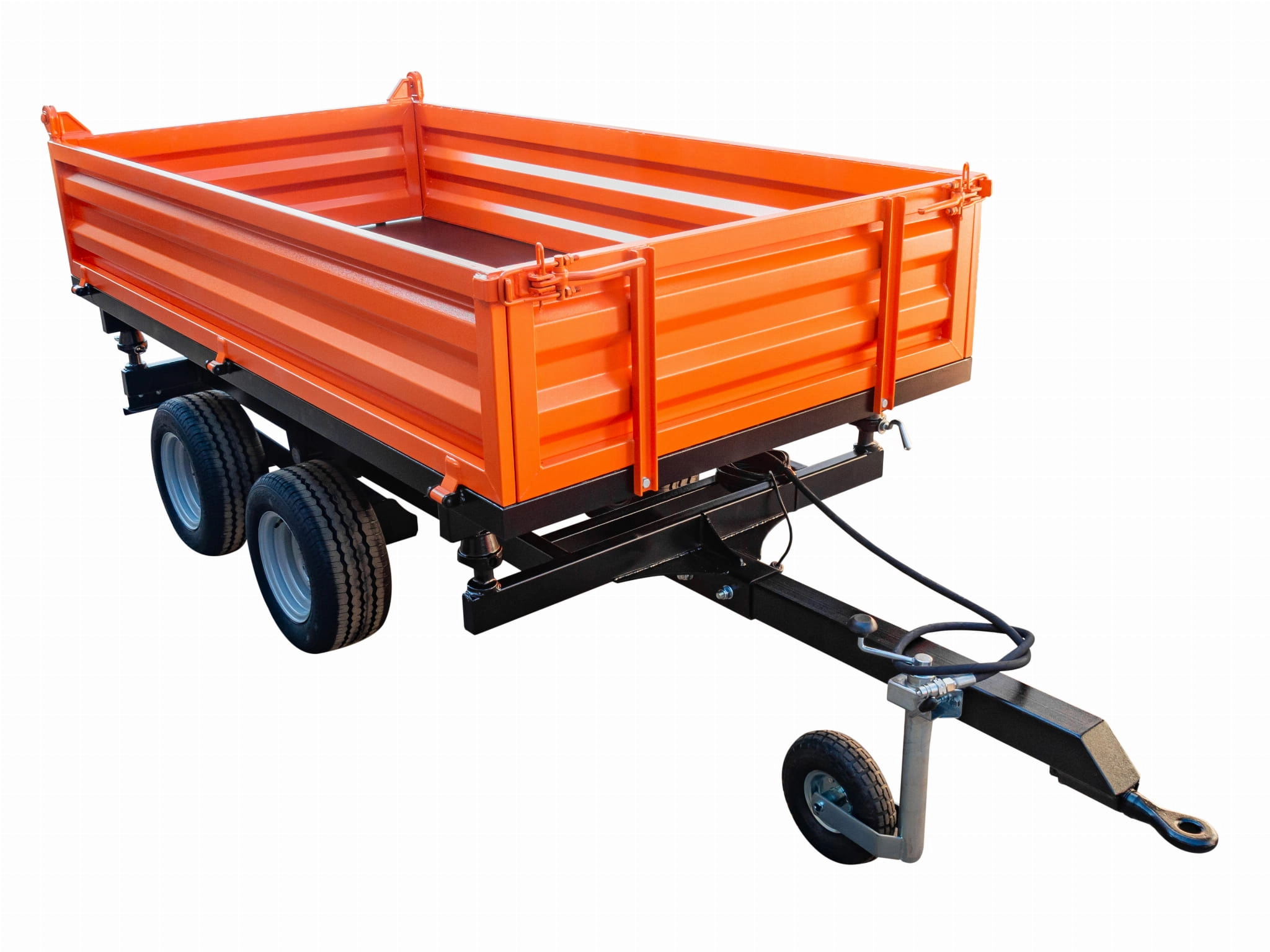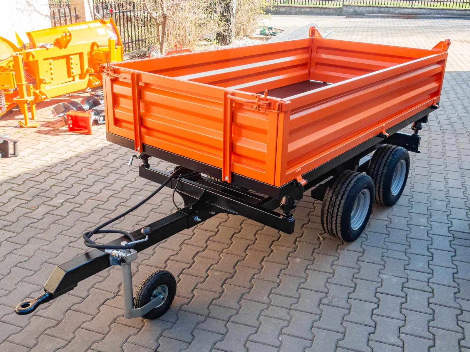 Dwuosiowa przyczepa rolnicza (do ciągnika, minitraktora lub quada ) o ładowności 2,5t z hydrauliką o wszechstronnym zastosowaniu. Duża ładowność, dwie osie, cztery koła i kiper na trzy strony to jedne z wielu zalet tej przyczepy.