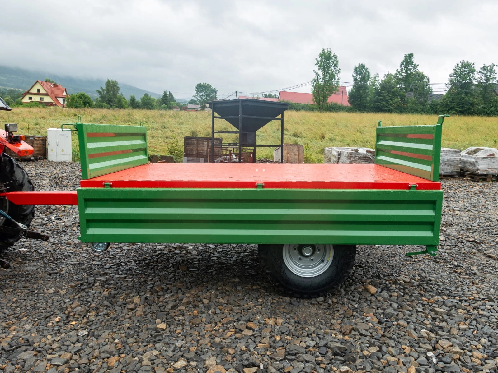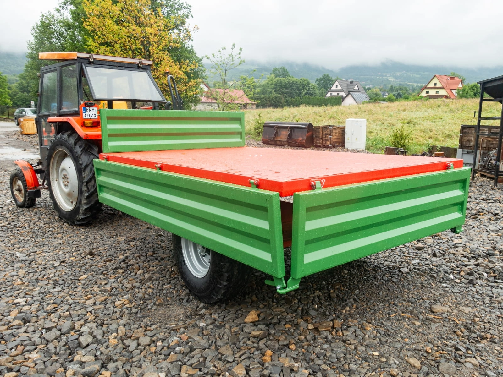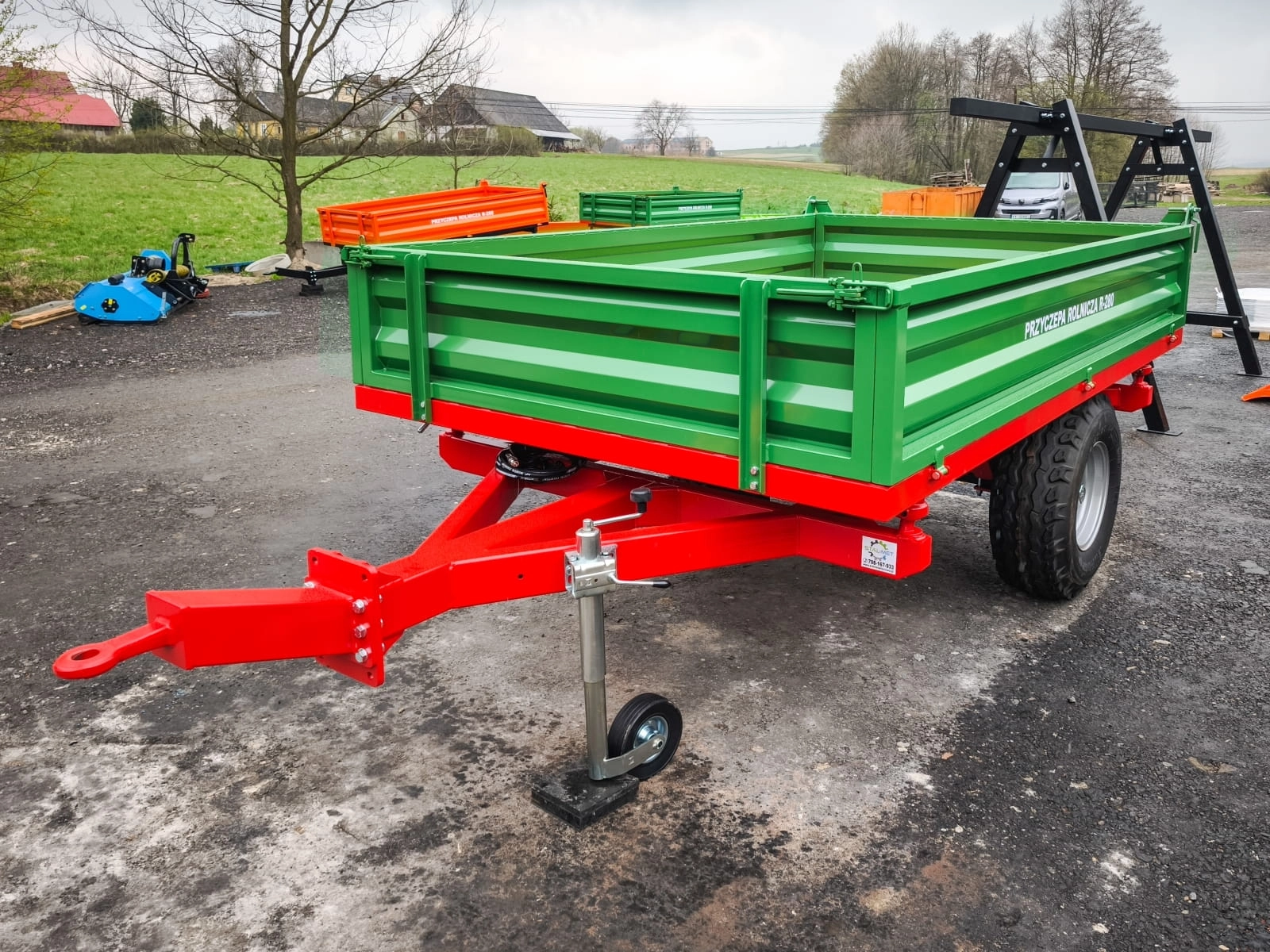 Oferowany wariant przyczepy rolniczej to idealne rozwiązanie nie tylko dla rolników ale również firm zajmujących się transportem materiałów w ciężkich warunkach terenowych. Przyczepa wykonana jest z trwałych materiałów a malowanie proszkowe oprócz walorów estetycznych zapewnia również większą odporność na zarysowania. Sprawdzi się zarówno do ciągników jak u mini traktorów yanmar, iseki, kubota oraz quadów.