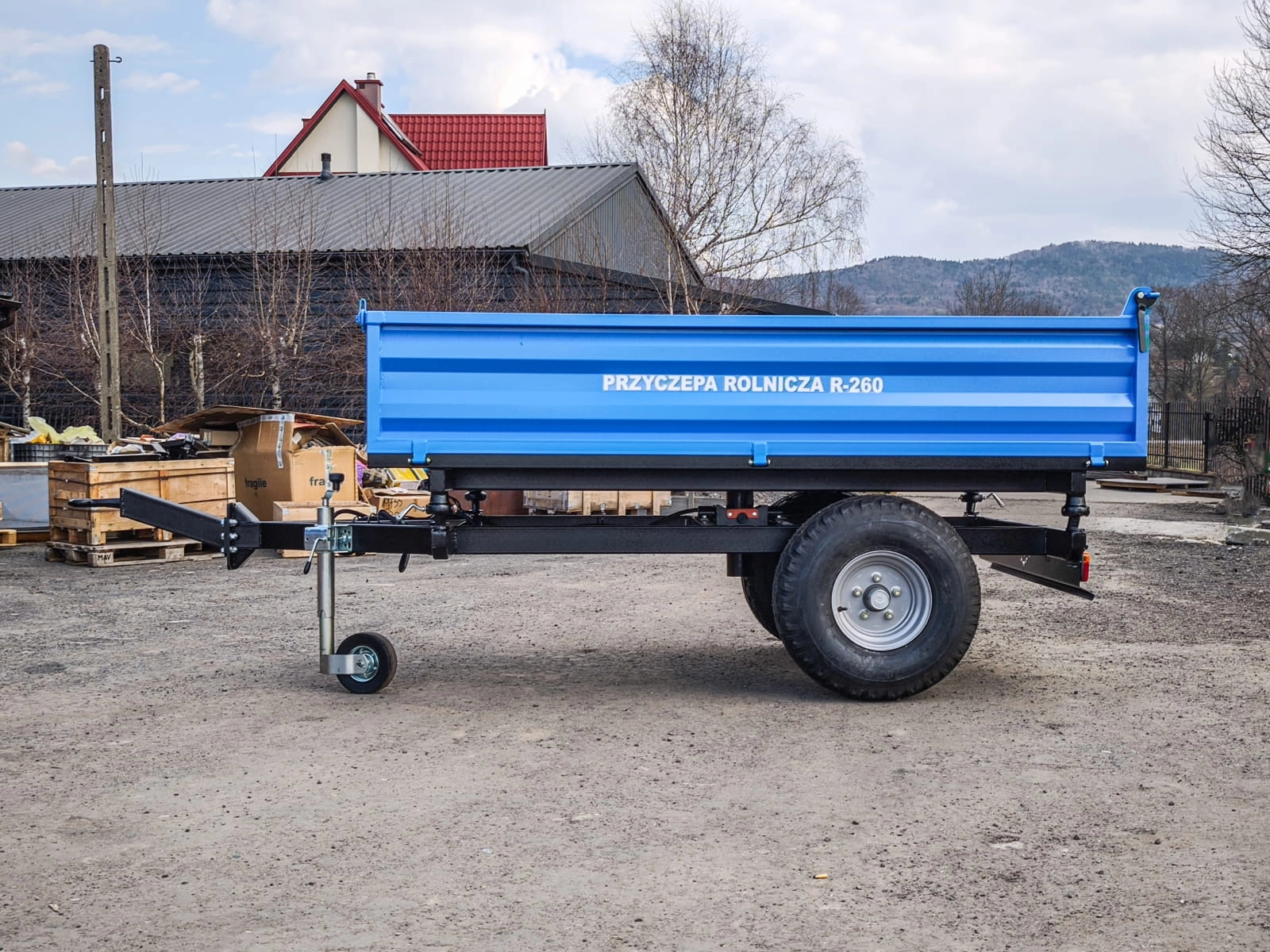 Przyczepa rolnicza jednoosiowa z wywrotem do traktora 2,5t, model: R-260cn