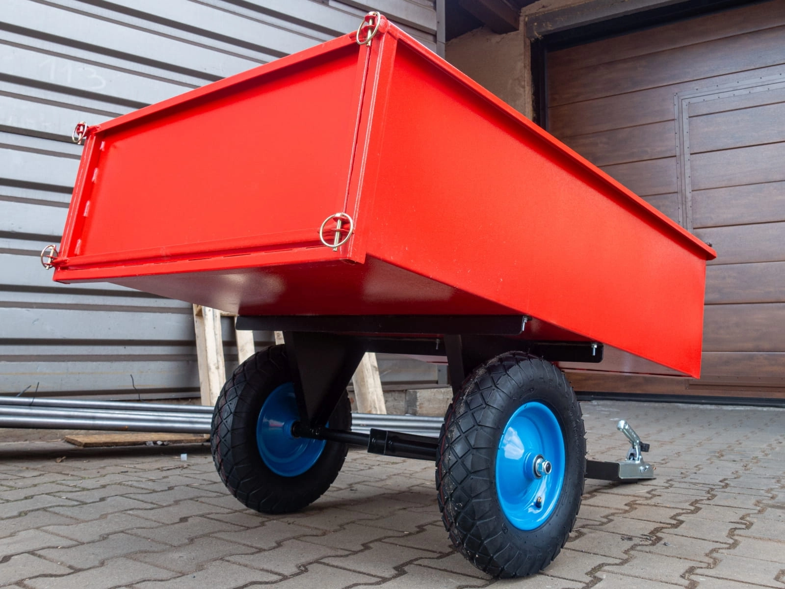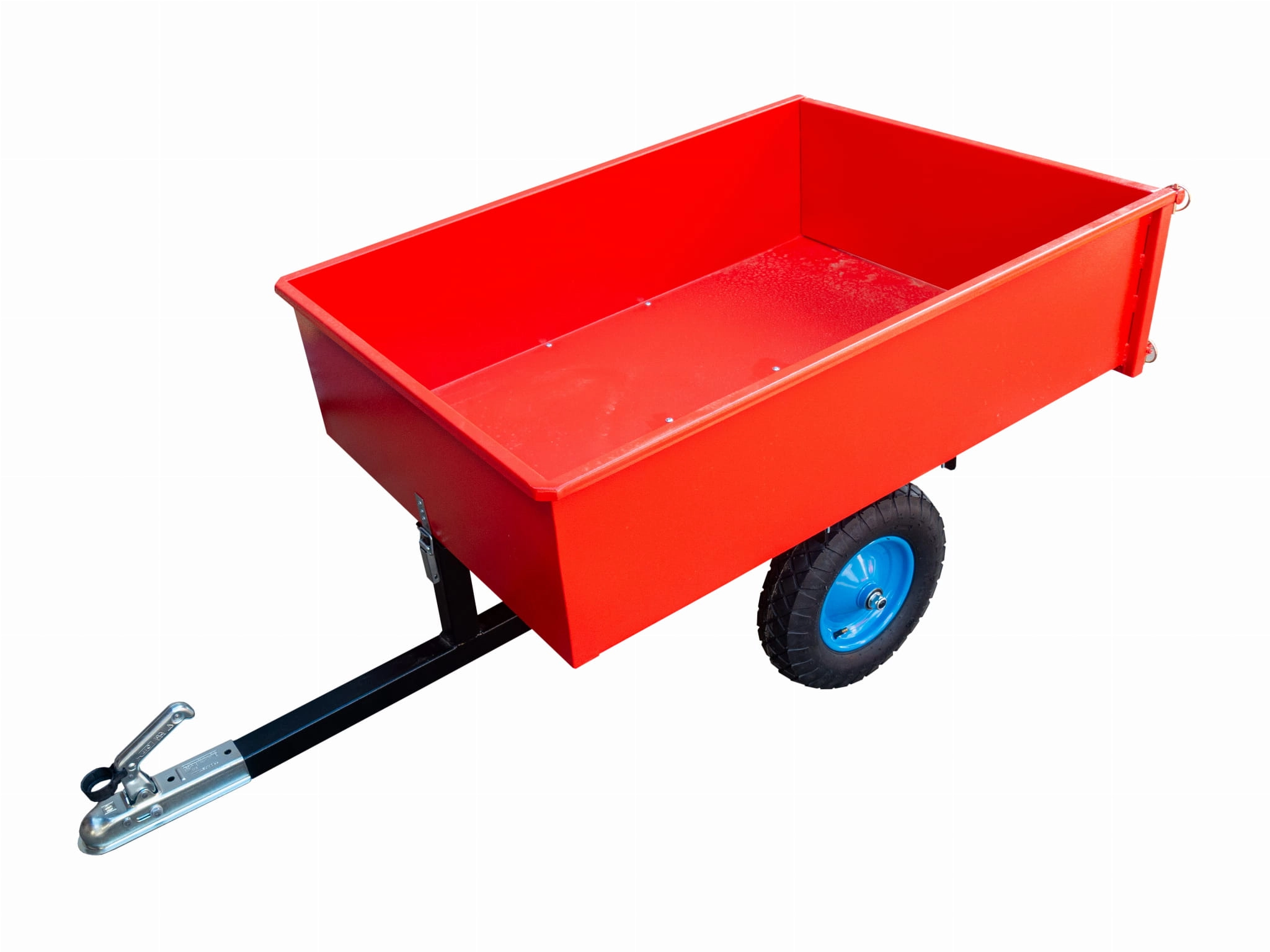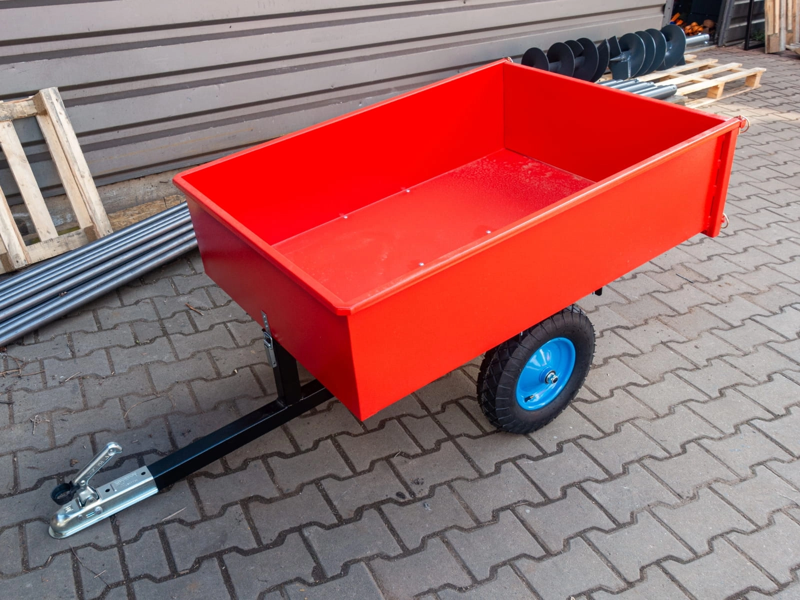 Solidna przyczepka ogrodowa do Quada, traktorka z funkcją wywrotki. Nasza przyczepka zapewni sprawne przewiezienie ładunku o wadze nawet 300kg za pomocą quada, traktora ogrodowego lub innych maszyn. Idealnie nadaje się do transportu opału, trawy, ziemi ogrodowej, kruszywa, nawozów itp.