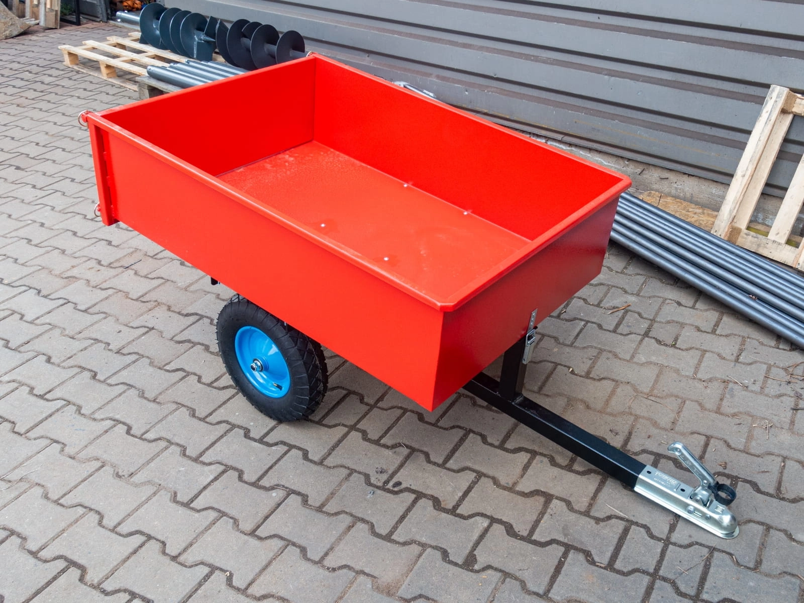 Lekka, estetyczna i przede wszystkim solidna przyczepka ogrodowa w kolorze czerwonym (RAL3020), która idealnie sprawdzi się do Quadów, traktorków, ATV.