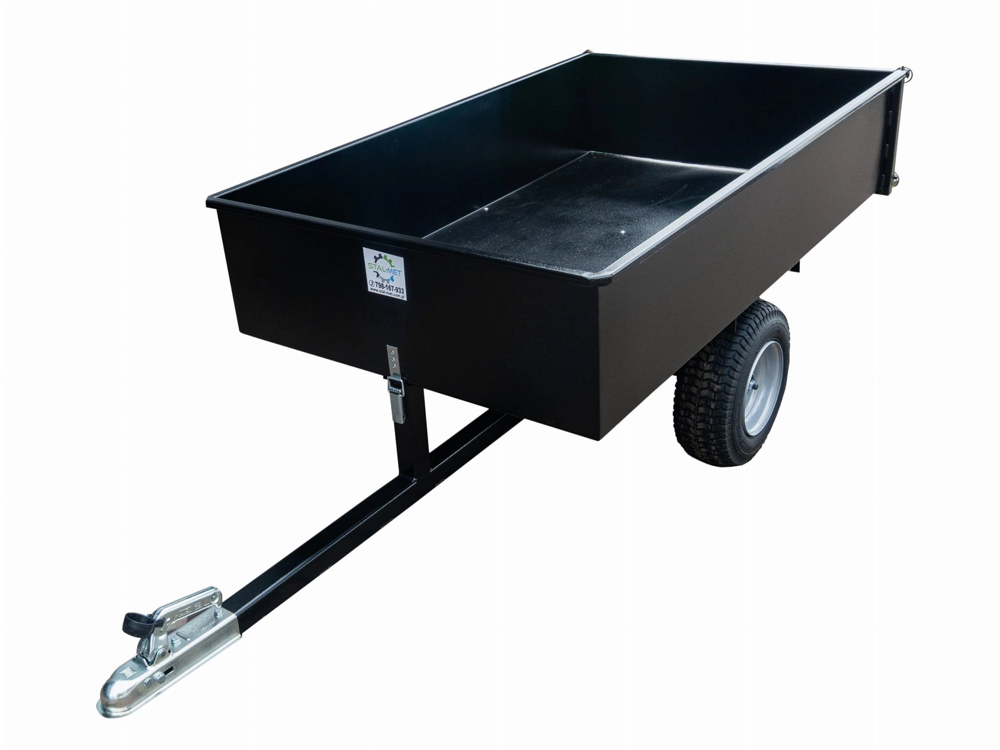 Lekka, estetyczna i przede wszystkim solidna przyczepka ogrodowa w kolorze czarnym, która idealnie sprawdzi się do Quadów, traktorków, ATV.